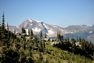 There are between 1,400 and 2,000 Mountain Goats in the park, and they live in higher and steeper terrain than any of Glacier's other large inhabitants. Today, we saw 13 mountain goats (nannies and juveniles) on the far side of the Garden Wall. It was in the 70's, which is very warm for mountain goats. They prefer much cooler temperatures, as they are very well insulated. So we watched them stay in the shadows, digging holes to lie in, and as the sun moved, the proceeded to climb the cliffs and across the mountain to cooler settings. It is always amazing to watch the goats walk on the cliffs -- their hooves are unusually flexible, with rough traction pads on the bottom and hard, gripping edges. Their short legs provide a low center of gravity, so they can perch on thin ledges and pinnacles.